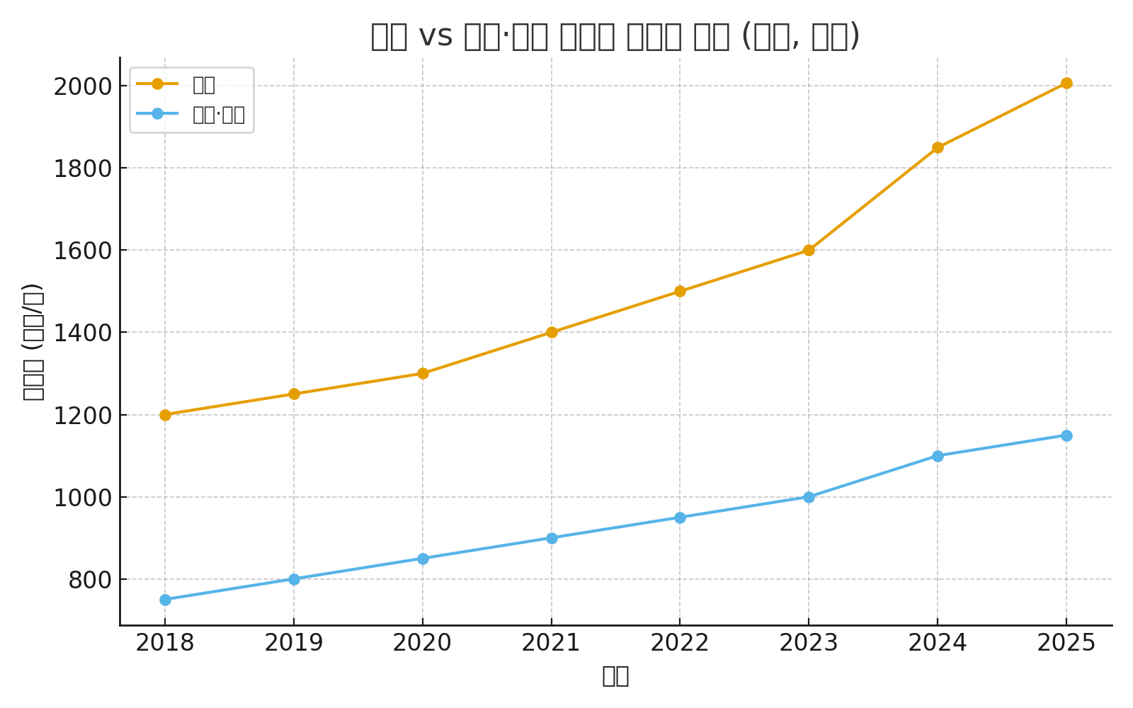 - 구축: 입지가 좋고 리모델링/재건축 가능성 있는 곳 위주 → 시간이 갈수록 희소성 강화.